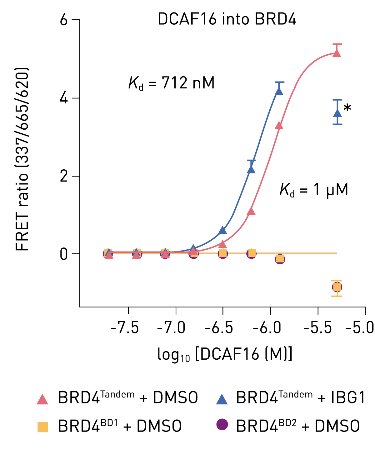 Ternary complex formation between the glue and these two proteins could be measured by TR-FRET using a europium-labeled antibody against BRD4 and Cy5-labeled DCAF16 (Fig. 2). Dissociation binding constants (KD) were determined on the PHERAstar FSX and the results highlighted new interaction mechanisms for novel molecular glue degraders.